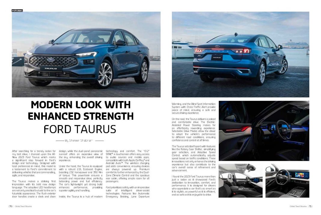 Motoring Modern Look with Enhanced Strength: Ford Taurus By: admin Date: January 2, 2024 Share: FacebookTwitterPinterestWhatsApp TagsAutomotiveFord TaurusGlobal Trend MonitorMotoringShereen ShabnamTest CarTest Drive admin Share FacebookTwitterPinterestWhatsApp ━ more like this Motoring Bold, Smart, and Built for Modern Adventures: 2026 Ford Territory October 5, 2025 Motoring EXEED ET: Mastering Range, Comfort & Ambition October 4, 2025 Previous articleSpeed, Style, and SophisticationNext articleRevolutionizing Mobility: My Zeekr Experience